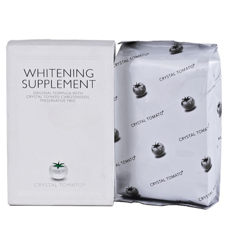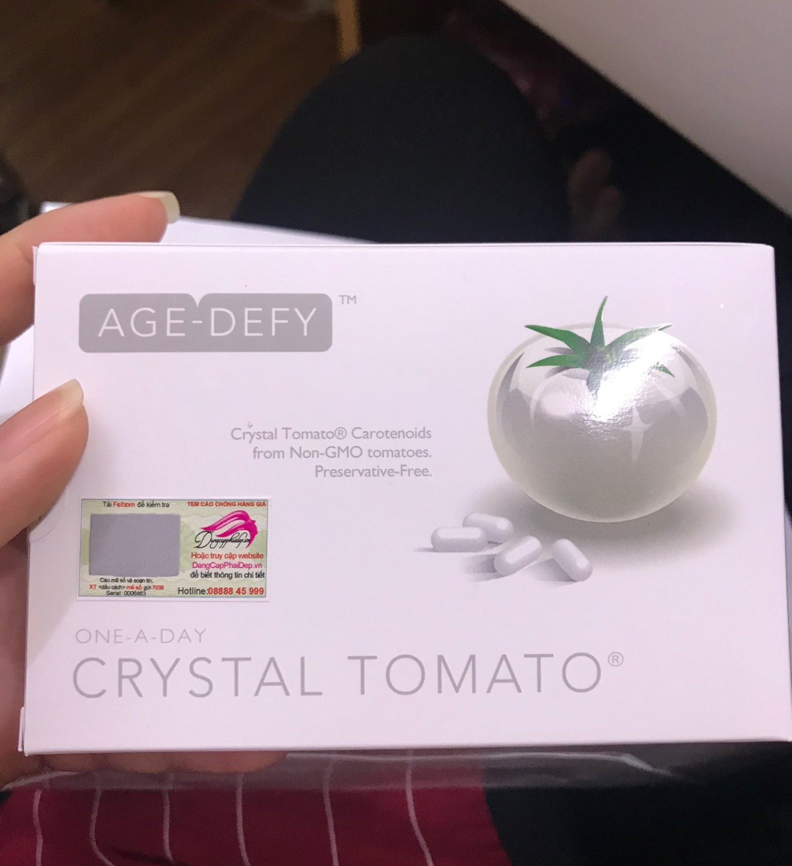 Viên uống trắng da Crystal Tomato được chiết xuất từ một giống cà chua trắng có khả năng độc đáo giúp làm giảm quá trình trình hình thành sắc tố melanin ở da. Đặc biệt, những thành phần này còn giúp trẻ hóa da vì chứa hoạt tính làm chậm oxy hóa.